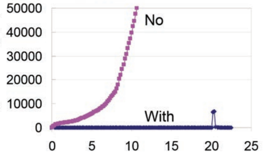 약 7ppm(7,000ppb) 농도의 튜브를 사용하여 테스트 마지막에 실시한 범프 검사 결과, 튜브가 물로 거의 완전히 포화된 상태에서도 VOC에 여전히 반응하는 것으로 나타났습니다.